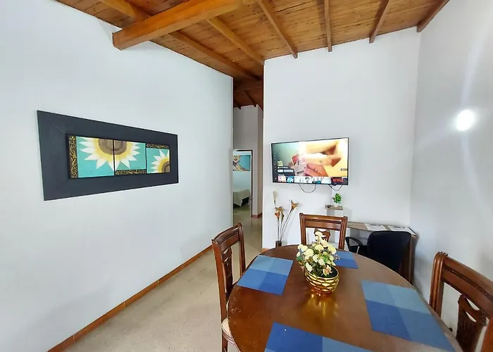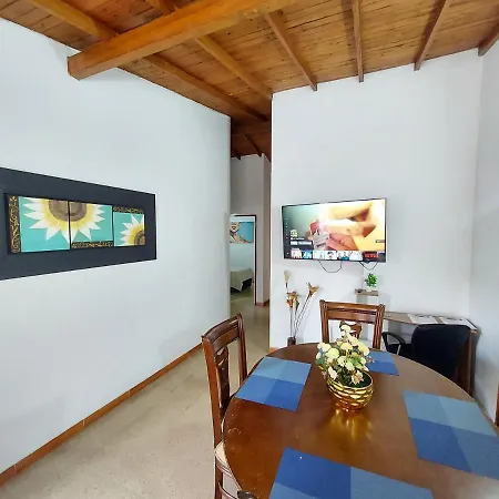 Casa Poblado Sector Manila ferielejlighed har udsigt over haven og ligger 3 km fra Den lille by Paisa. Lejlighed består af 3 soveværelser, 1 badeværelser og også et køkken.